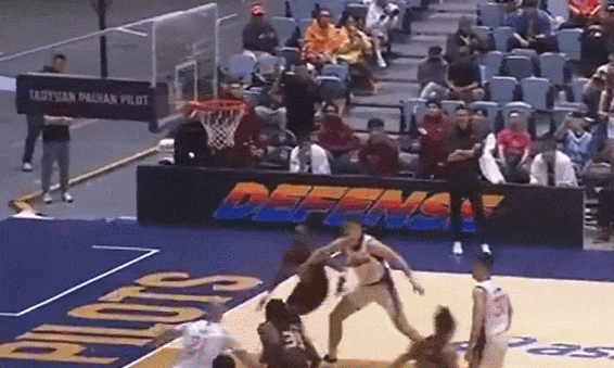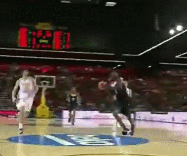 身体素质的确强悍,抢到篮板后稍微助跑就能腾空炸扣。