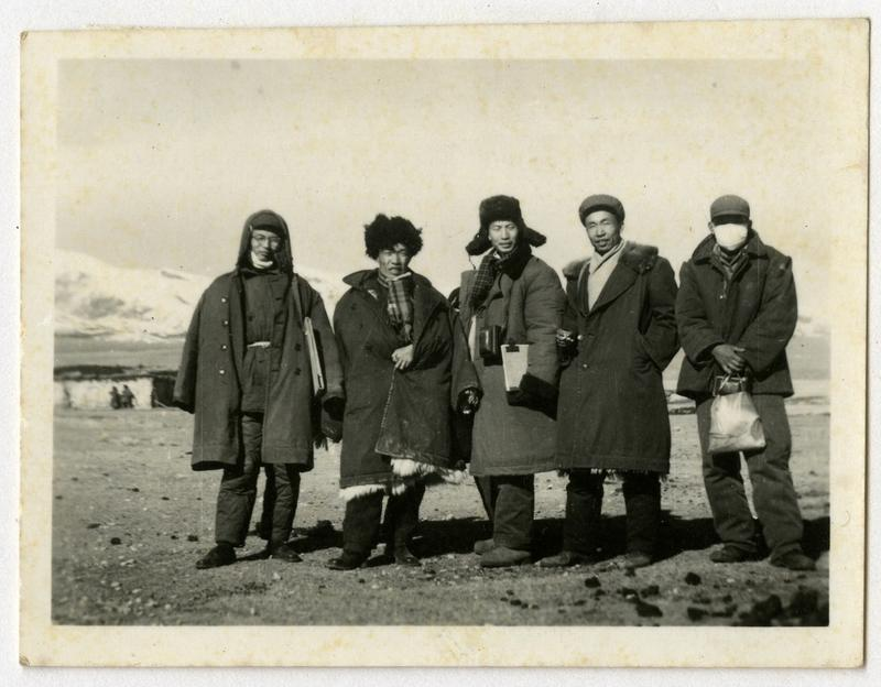 1965年在藏北草原,随中央代表团赴西藏庆祝西藏自治区成立,右二梁世雄,左一为刘济荣